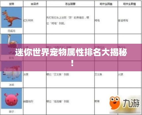 在迷你世界的奇幻世界中,宠物是玩家们忠实的伙伴,它们不仅可爱迷人,还拥有各自独特的属性技能,为玩家们的冒险旅程增添了不少乐趣,今天我们就来探讨一下迷你世界中宠物的属性排名,看看哪些宠物在各项属性上表现出色。