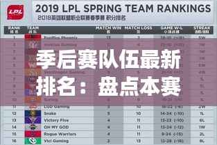 标题:季后赛队伍最新排名:盘点本赛季的竞争格局与黑马崛起